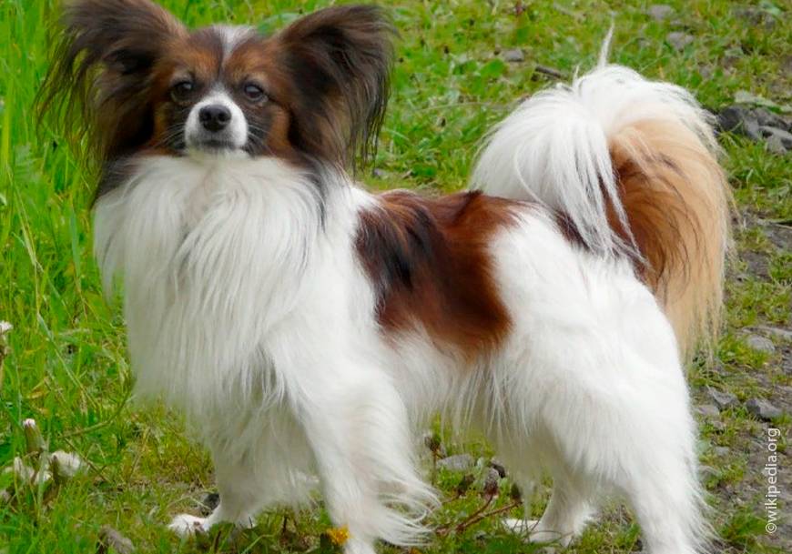 Хрупкая собачка с длинной шелковой шерсткой. Внешне очень напоминает мальтезе. Отличительная особенность — крылья бабочки вместо ушек.