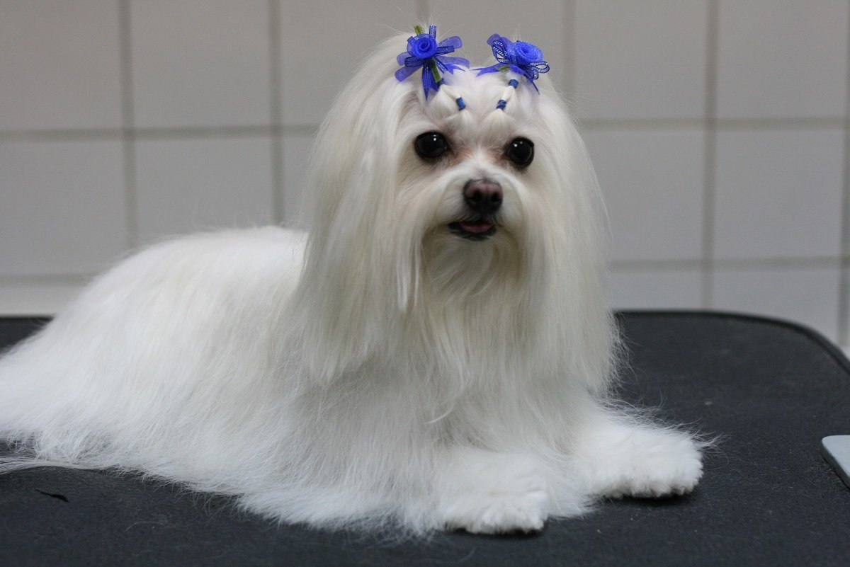 Дважды в месяц уделять внимание когтям — обрезать когтерезом и шлифовать пилочкой. Если не планируется участие в выставках, то делается стрижка мальтийской болонки, что значительно облегчает уход за ней.