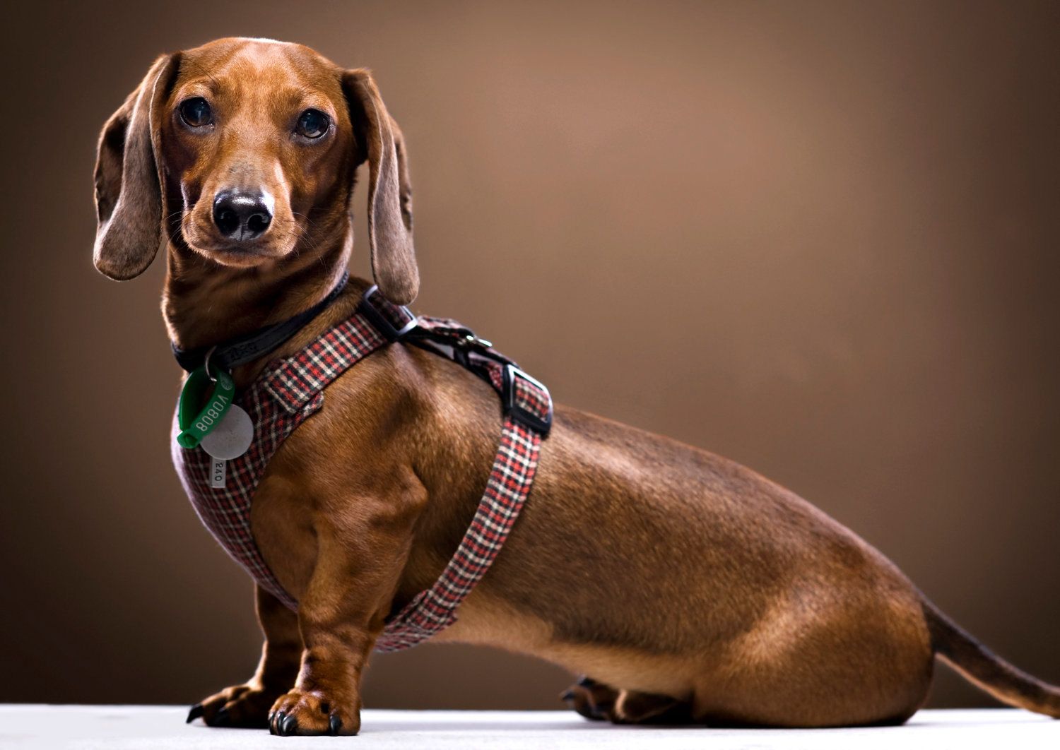 С двухмесячного возраста на щенка одевают ошейник. Обычно собаки их не любят и плохо привыкают и к поводкам, и к ошейникам или шлейкам. Но в городе гулять с таксой без поводка может быть опасно.