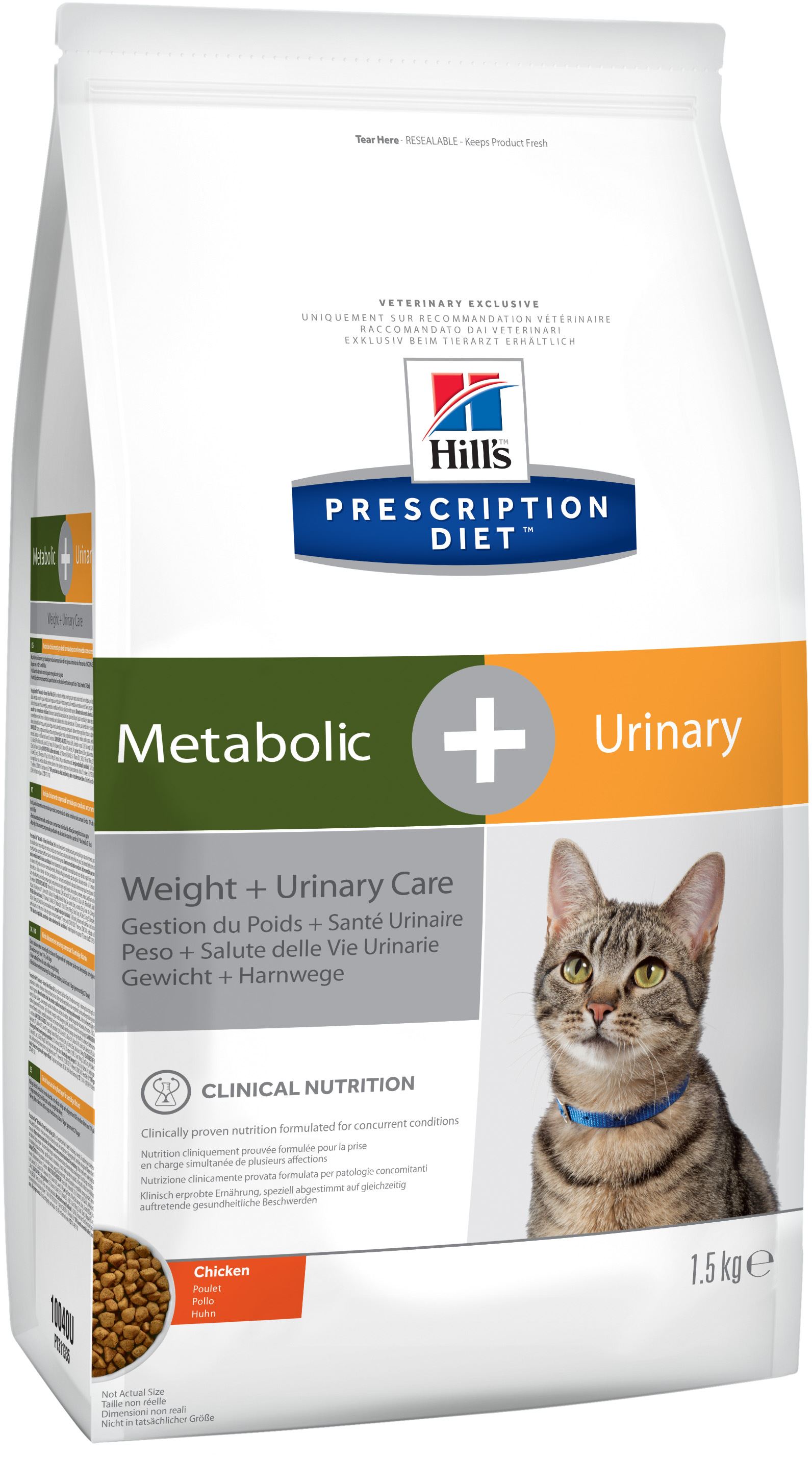 Хиллс Метаболик + Уринари назначают для снижения живой массы, в среднем, на 11% за два месяца применения. Специально разработанный рацион позволяет добиться желательного веса и поддерживать его продолжительное время.