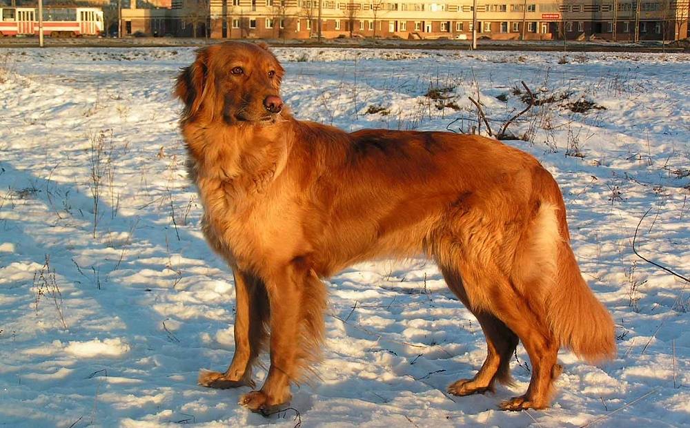 Голова: мощная, широкий лоб, длина морды и черепа примерно одинакова. Ножницеобразный прикус. Треугольные широко посаженные уши.Шея: с прилегающей кожей, средней длины.Корпус: крепкая прямая спина, сильная поясница, несколько скошенный средней длины круп, глубокая, широкая, сильная грудь.Хвост: длина хвоста — чуть ниже скакательных суставов, покрыт густой шерстью.Конечности: прямые, сильные, с развитыми мускулами. Лапы круглые, компактные, сильные.Движения: прямолинейны при любом аллюре. Размашистая рысь с сильным толчком задних конечностей.Шерсть: плотный волосяной покров, средняя жёсткость, небольшой подшерсток. Шерсть длинная, слегка волнистая. Более удлинена на животе, груди, хвосте и задней стороне конечностей. Окрас: существуют только три — палевый, чёрно-подпалый и чёрный.Недостатки: любое отклонение от вышеуказанных пунктов стандарта.