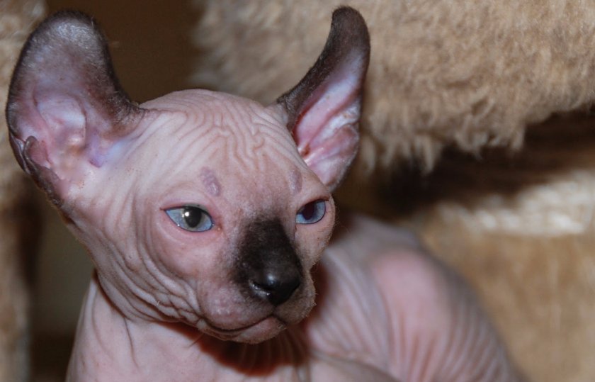 Причина отсутствия шерсти у представителей этой породы кошек до сих пор до конца не установлена. Устойчивым научным ответом на этот вопрос стала генная мутация. Характерологическая особенность сфинксов – принятие позы «мечтателя».