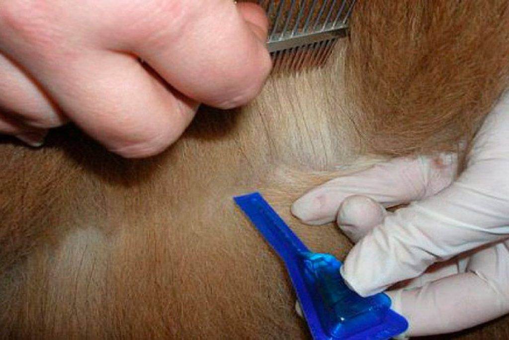 - шерсть, подшерсток аккуратно раздвигаются, и все содержимое пипетки выдавливается на кожный покров.