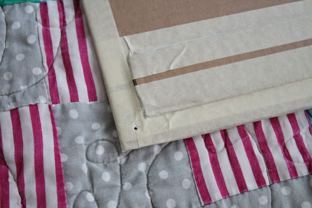 Оборачиваем поролон тканью, делая припуски. Закрепляем их с нижней стороны.