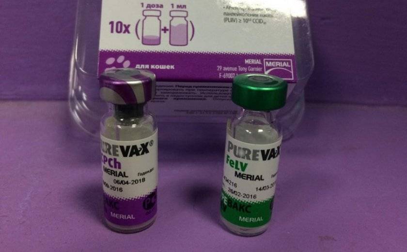 Вакцина смешивается с разбавителем в момент применения. Биологическое воздействие Вакцина Пуревакс вызывает образование иммунной реакции у кошек к возбудителям панлейкопении, ринотрахеита, калицивироза и хламиндоза спустя 14 — 28 суток после ввода.Протяжность воздействия Purevax — год.