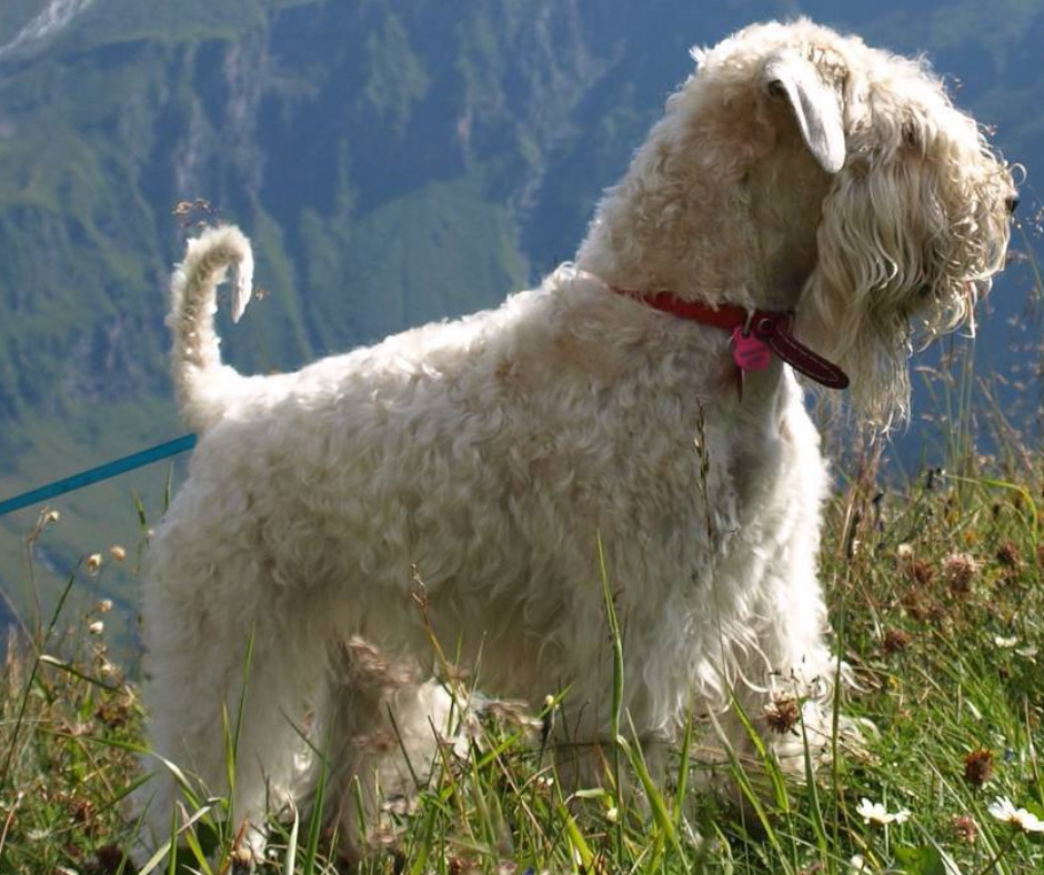 - Шерстный покров у взрослых животных мягкий, но не пушистый как у пуделя, средней длины, закрывает морду. Обладает характерным крупным завитком или волной, лишен подшерстка (кроме внутренней зоны ушной раковины). Допустимо выставлять псов после тримминга или в естественном состоянии.