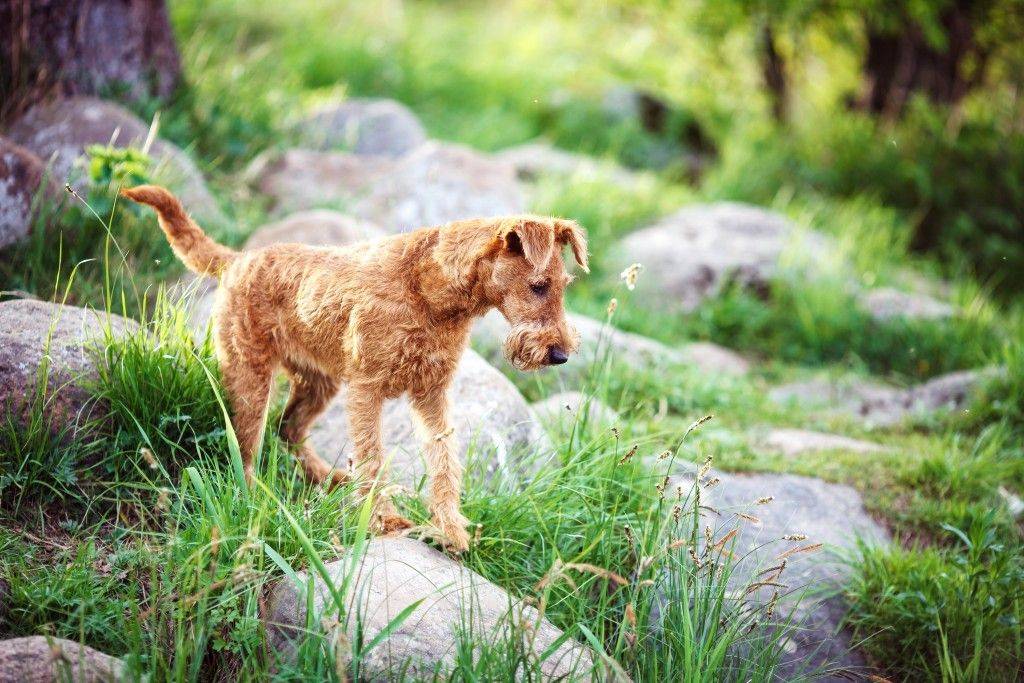 - Эрдельтерьер — вырастает от 56 до 61 см, с весом от 18 до 29 кг. Энергичный пес с независимым характером, способный принимать решения самостоятельно. Недоброжелательно относится к другим животным, может обижаться.