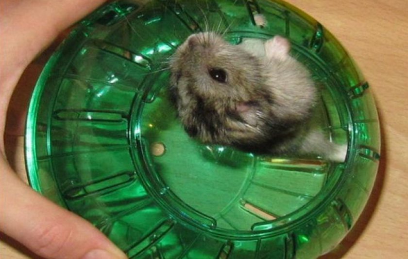 В таком случае хомяку не удаться свободно перемещаться по квартире либо комнате, однако необходимую спортивную нагрузку такой приспособление всё же оказывает.