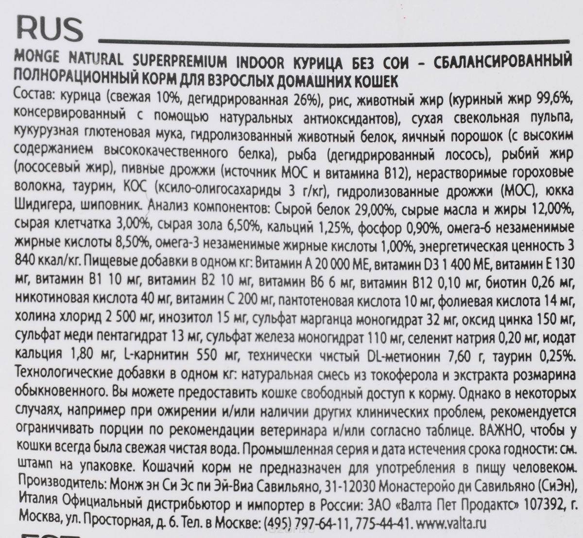 Для того чтобы понять, насколько сбалансирован корм для кошек Monge, детально рассмотрим состав нескольких вариантов корма.