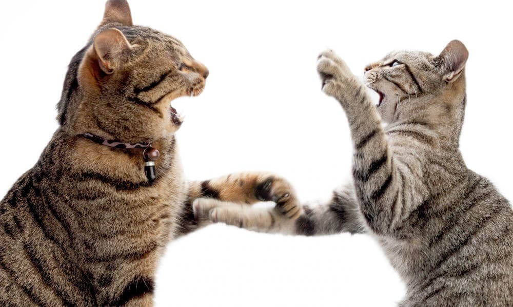 К сожалению, иногда животные проявляют настоящую агрессию друг к другу. Коты могут начать наскакивать друг на друга, бить лапами или гонять по комнате. Если такое происходит, то не нужно вмешиваться, а просто наблюдать, давая животным выяснить, уживутся ли два кота в одной квартире и «кто в доме хозяин». Однако если агрессия превратилась в полноценную драку, стоит разогнать животных (не разнимать руками!) и на время развести по разным помещениям.