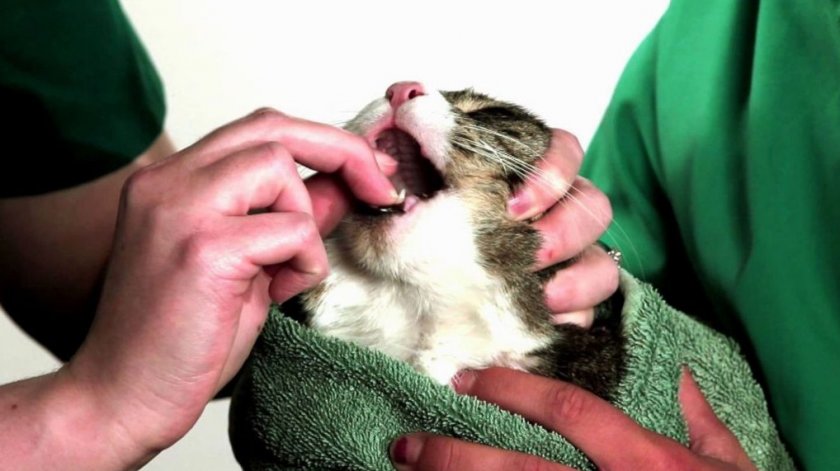 - Котенку открывают рот и кладут на корень языка таблетку.