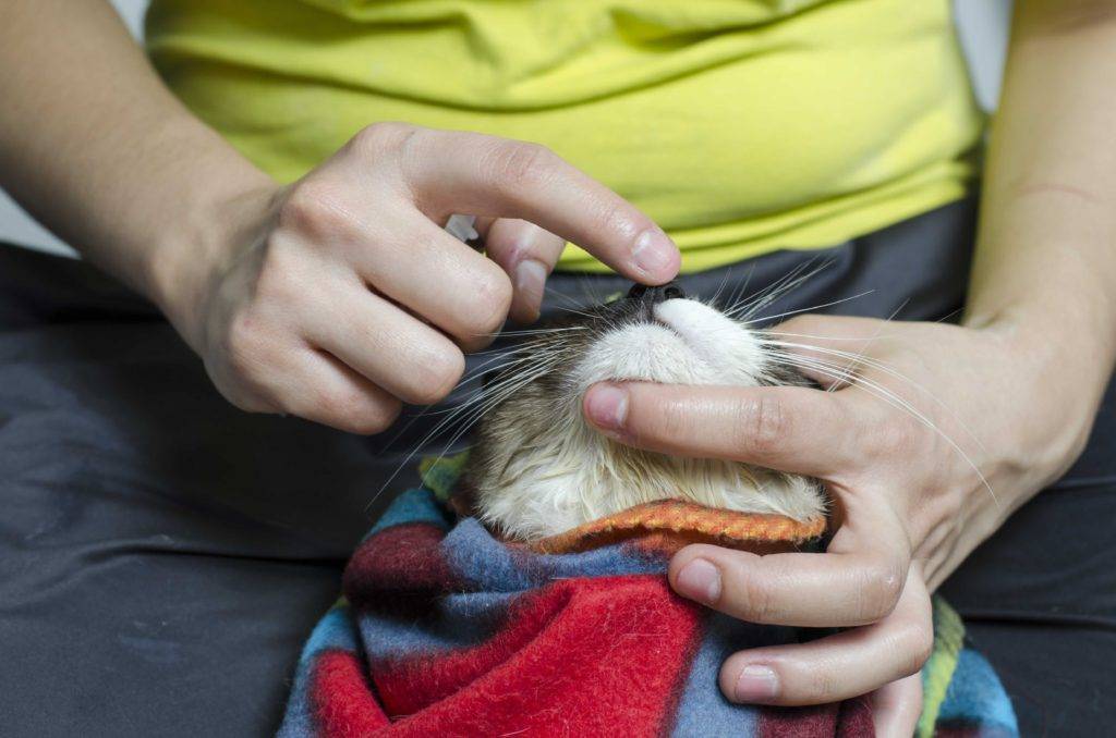 Если ваш питомец с характером, заверните его в плотное полотенце – так вы избежите царапин и даже укусов. Царапины не так страшны, а вот укусы очень болезненны и заживают долго.