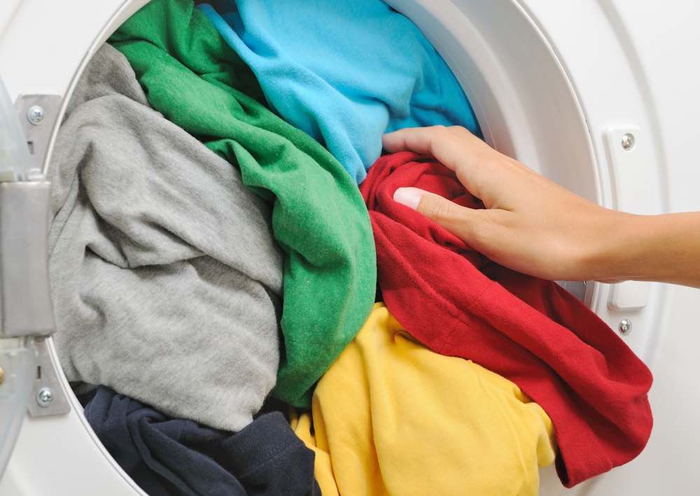 Стирать постельное белье, плед и одежду в машинке желательно, положив в барабан отрезанную половину новой кухонной губки. Заполнять машинку вещами по максимуму также не стоит.