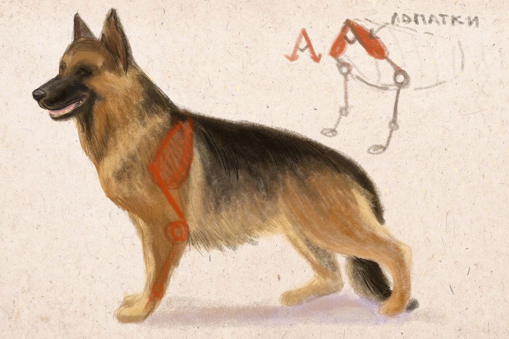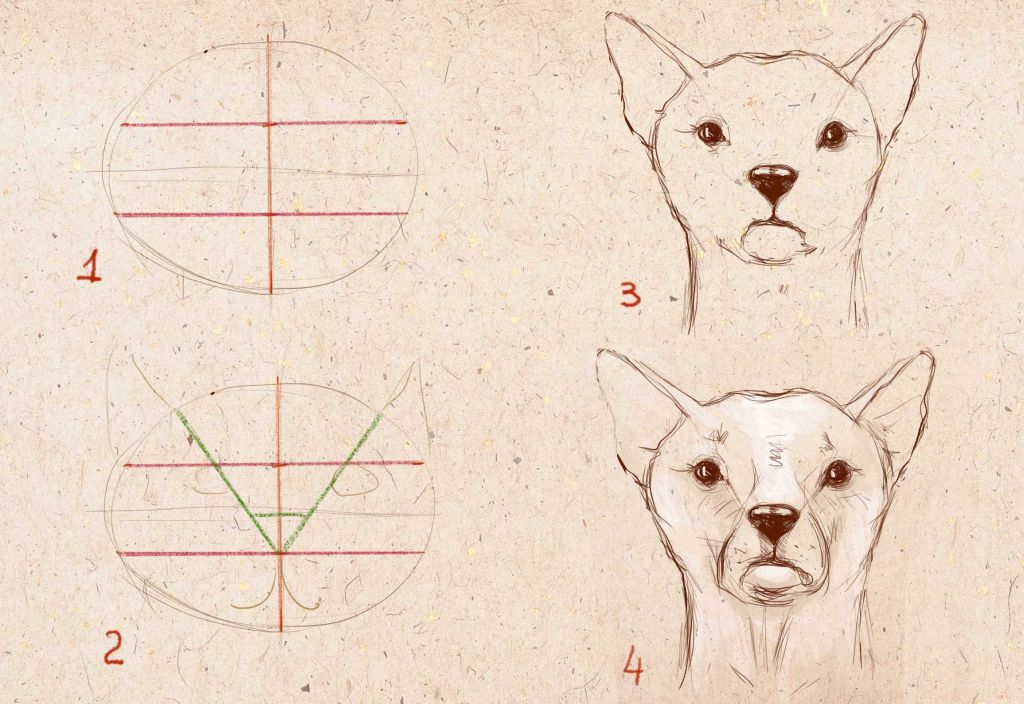 1. Нарисуем немецкую овчарку. Анфас или треть четвертной оборот?