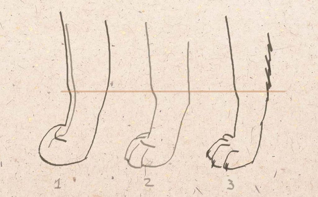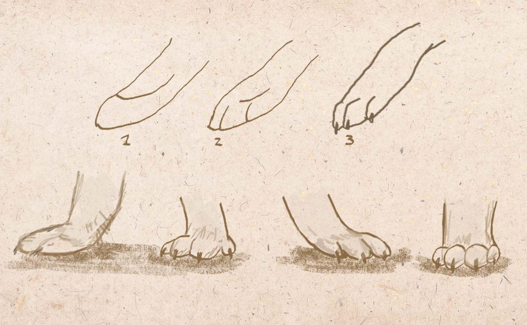 5. Теперь заднюю часть тела и лапу. Прорисуйте пальчики.
