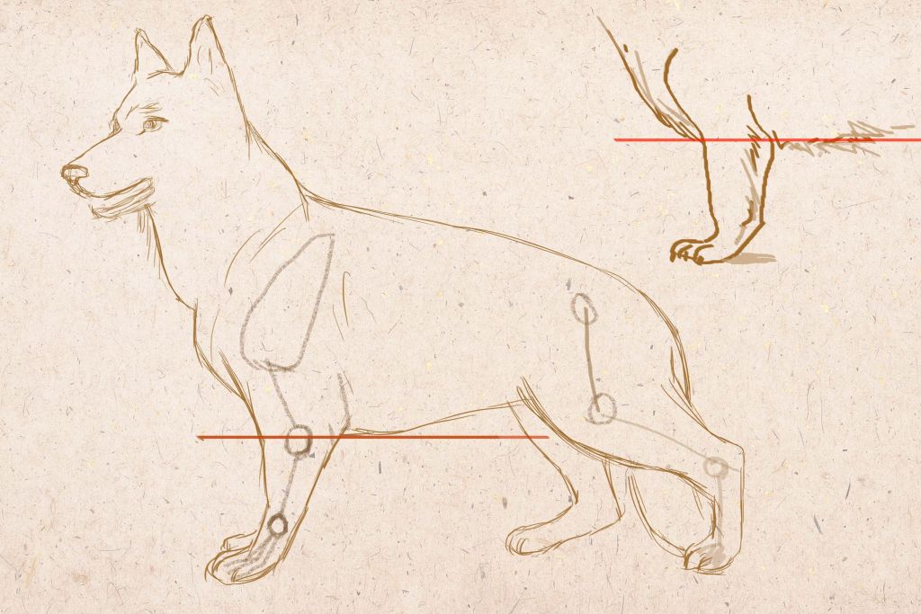 Рисуйте задние ноги примерно на одном уровне с передними ногами.