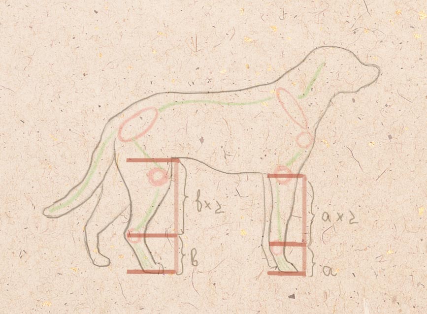 Таким образом, если перед художником встает вопрос, как нарисовать морду, собаку и ветеринарные аксессуары, для облегчения этого процесса лучше выбрать профиль животного либо разворот в три четверти плоскости, когда поворот тела животного совпадает с осью в трехосевой системе геометрических координат. Построение прямоугольников следует выполнять карандашом твердости 4Н, не используя физического нажима на бумагу – так он без труда будет стерт ластиком на этапе наложения теней.