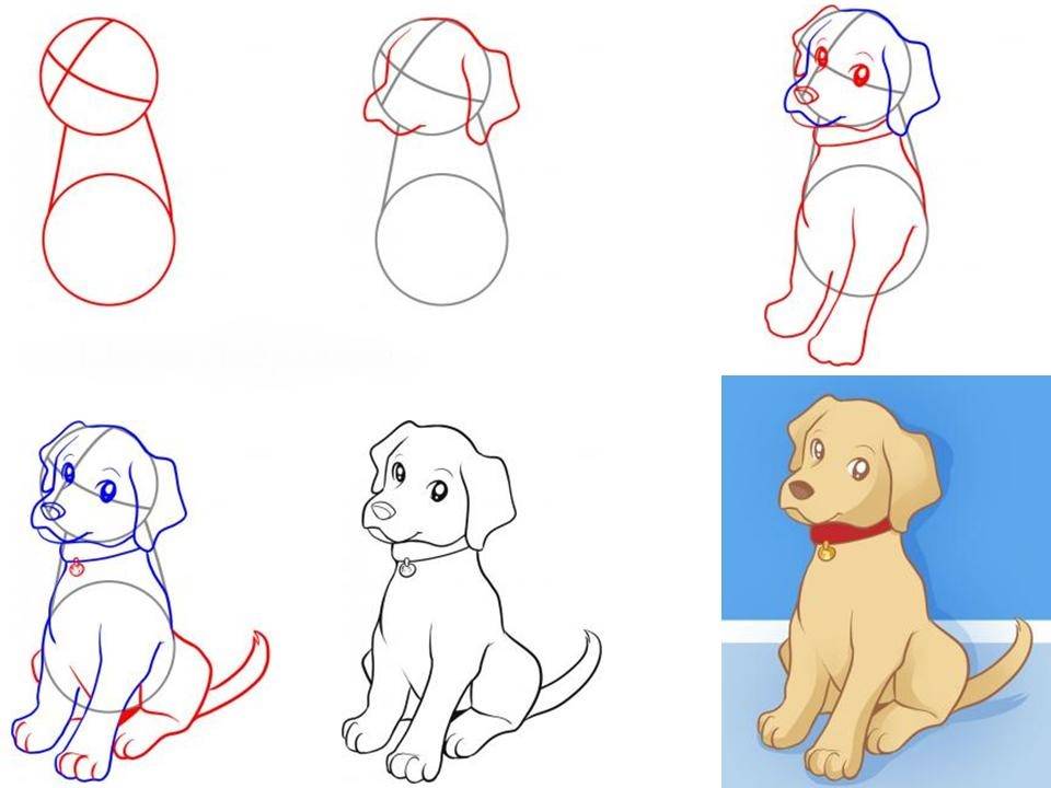 Попробуйте нарисовать собаку поэтапно с помощью этого урока. Можете нарисвать собку и с помощью видео, сделанному на тему этого урока рисунка собаки. Ссылка на видео как нарисовать собаку находится в конце этого урока.