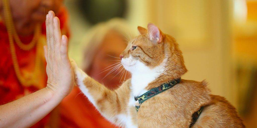 В домашних условиях кошки легко обучаются таким действиям, как “лежать” или “дай пять”.