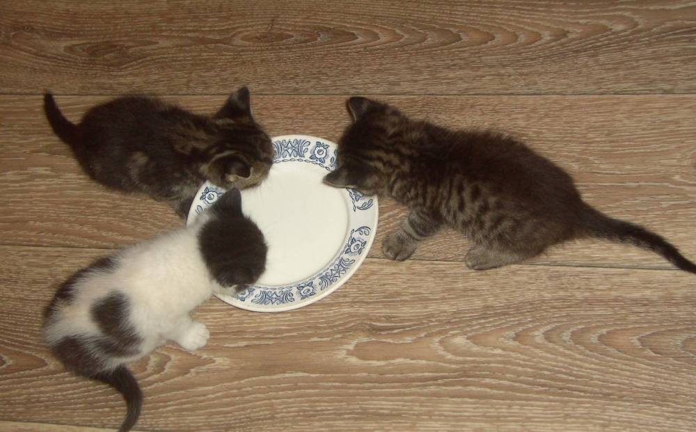 В трехнедельном возрасте котята еще не способны кушать самостоятельно с миски, поэтому давайте им первый прикорм на ложечке или пальце. С какого возраста котенок будет готов начать есть из миски сам? Если начать прикорм с трех недель, уже по достижении месяца он сможет питаться самостоятельно.