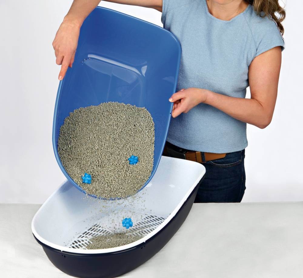 Не все владельцы кошек умеют правильно насыпать наполнитель в лоток с сеткой. Делать это надо следующим образом: