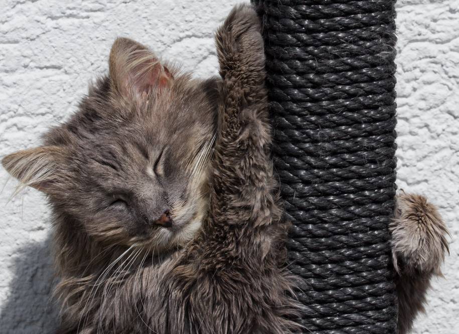 Самый простой и действенный способ как отучить кота драть мебель и обои — это приобрести для него когтеточку. Вариантов на рынке много, бывают как отдельные столбики, так и встроенные в домики, целые комплексы для игр. Приобретать стоит когтеточку из материала, больше похожего на тот, который питомец облюбовал в доме. Для установки нужно выбрать свободный угол или другой участок квартиры. Место для потребностей животного можно сделать из доски, ковролина, шпагата или обычной бельевой веревки. Для этого требуется обмотать материал вокруг жесткого и устойчивого основания.