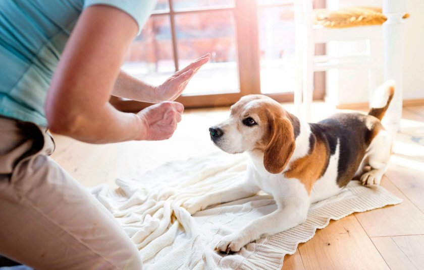 Когда животное все-таки запрыгнуло на ложе, его нужно сразу же прогнать. Затем показать жестом руки и голосовой командой, чтобы шел на свое место.