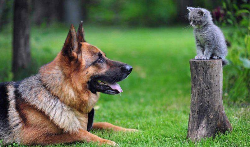 Подружить их между собой можно, однако в первые дни и недели придется тщательно следить за совместным поведением обеих особей – ведь даже в процессе игры взрослая собака может неумышленно нанести какую-нибудь травму малютке – котенку.