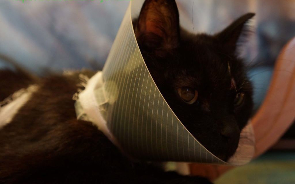 Фиксация кошки проводится в крайнем случае. Если животное расслаблено и позволяет с ним работать, никакие дополнительные приспособления не понадобятся. Если кошка кусается, на неё надевают ветеринарный воротник или намордник из плотной материи, закрывающий глаза и морду.