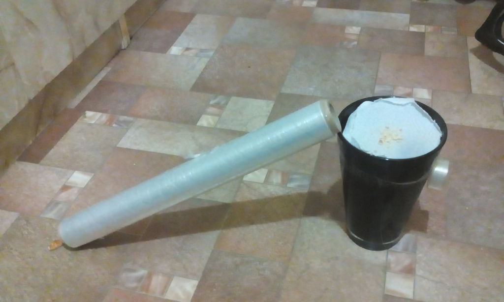 Ещё одна ловушка представляет собой картонную трубку. Один конец плотно заткните полотенцем, а внутрь другого и рядом с ним положите кусочки угощения. Дождитесь, когда привлечённый запахом еды беглец зайдёт в трубку, закройте ладонью вход и несите ловушку к клетке.