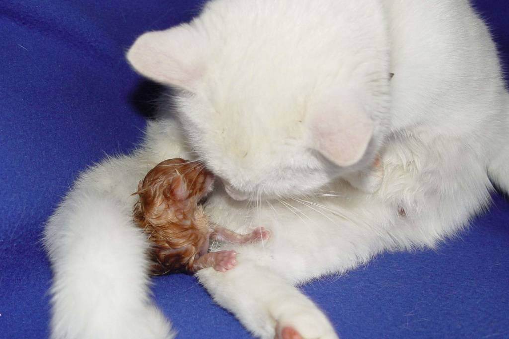 Сразу предупредим «чистюль», что рождение котят – процесс грязный. Будет кровь, слизь, родовые воды. Помните, что рождение котенка, обернутого в своеобразный «мешок» — явление нормальное. Это – плацентарные оболочки.