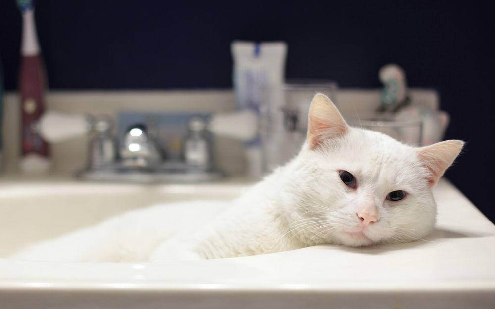 Как правило, самыми прохладными местами в квартире являются санузел и ванная комната, поэтому желательно оставлять двери в них открытыми, чтобы кошка могла периодически приходить туда для охлаждения. Если ваше животное не боится воды, то можно оставлять воду в ванной на проток, чтобы животное могло охладиться и попить. Если кошка не любит купаться, то насильно этого делать не стоит, но в жару рекомендуется периодически смачивать прохладной водой уши с внешней стороны, лапы и шерсть. Это можно сделать при помощи мокрой тряпочки или просто смоченными в воде ладонями.