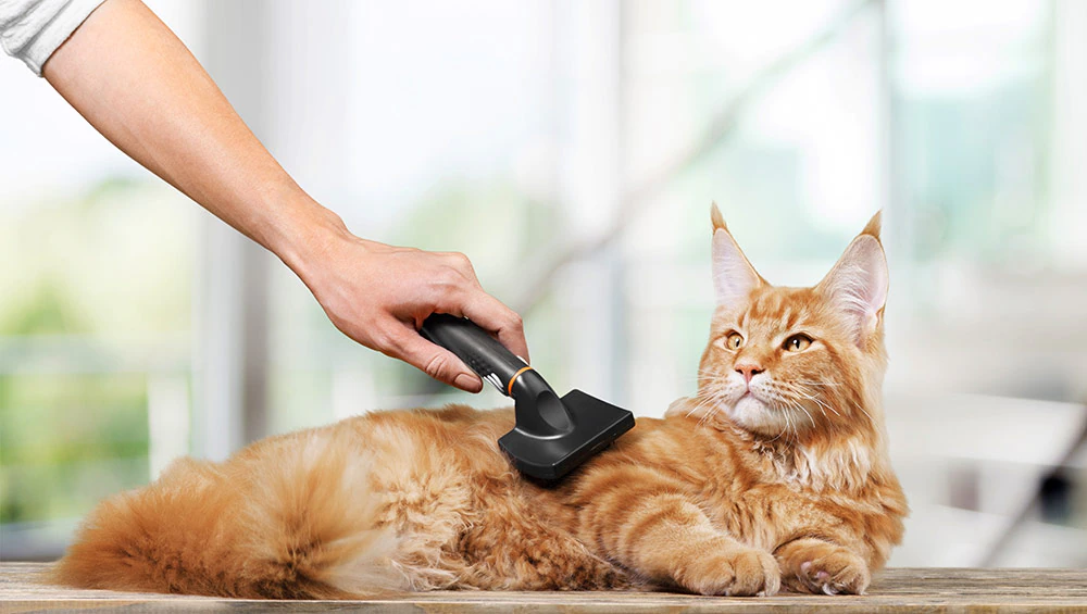 Если вычесываете животное в первый раз, начните с резиновой рукавицы или массажной щетки
