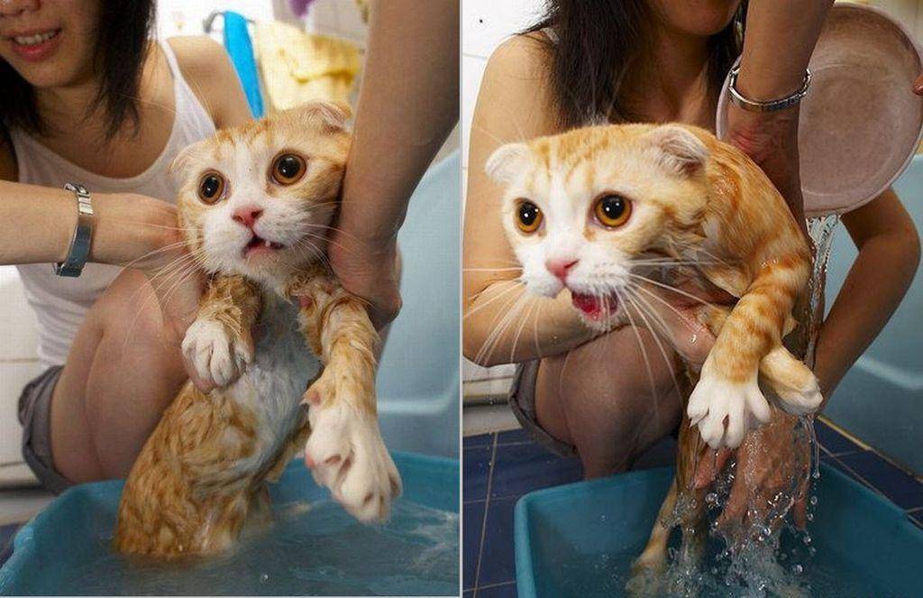 Помыть кота, если он боится воды — вполне возможно. Хозяину или хозяйке следует подготовиться к этому психологически, чтобы неизбежные казусы не стали шоком и неожиданностью. Ругать животное нельзя, кричать на него — тем более