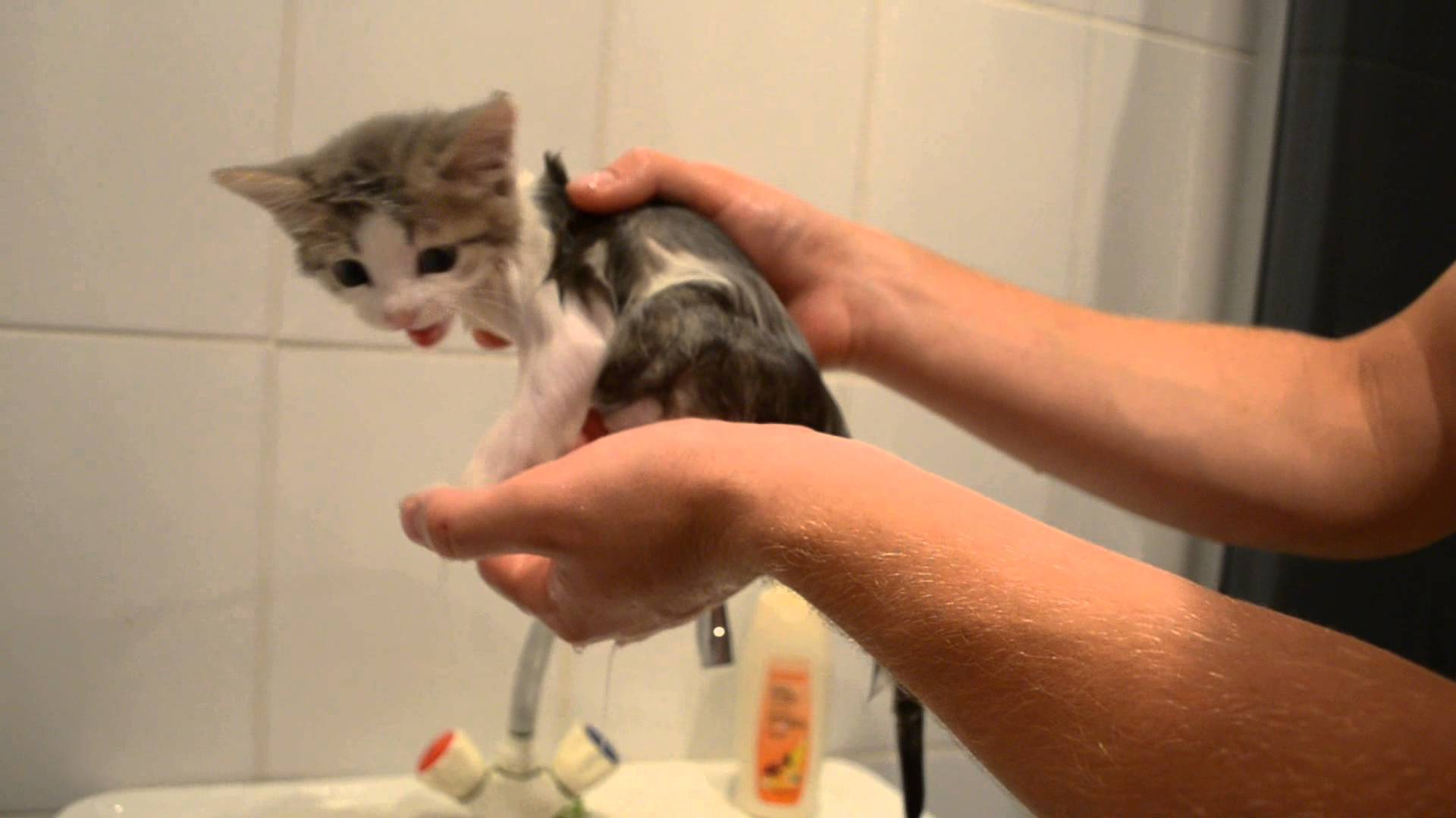 Ветеринары рекомендуют купать котёнка через 3-4 часа после принятия пищи. Чтобы купание происходило в более благоприятной обстановке, возьмите в ванную любимую игрушку малыша или водите перед его мордочкой верёвочкой, чтобы дать ему понять, что процедура абсолютно безопасна и нет повода для волнения. Хорошо бы после купания похвалить котёнка и дать ему любимое лакомство.