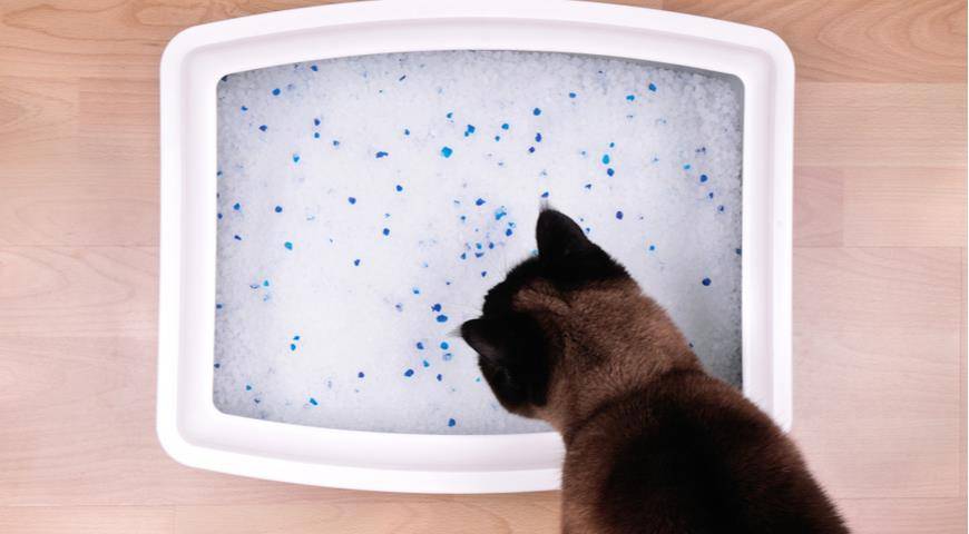 - Выбранное место следует посыпать гранулами кошачьего туалета, привычными для котейки.