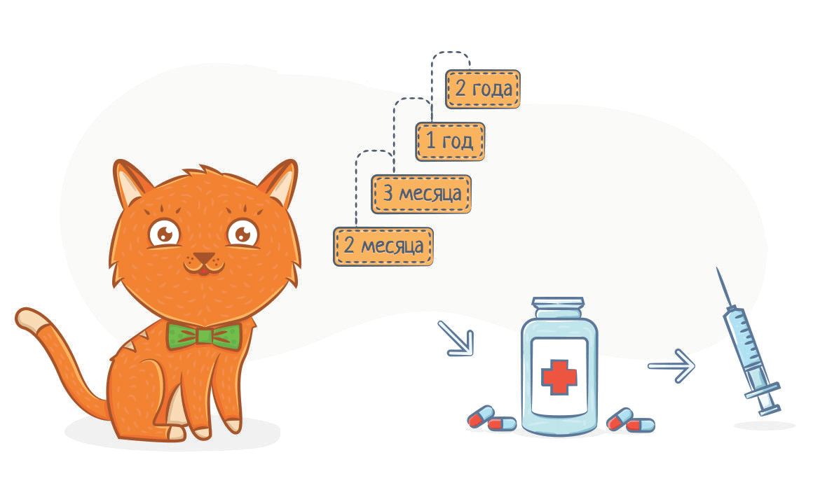 Если прошло более 2 недель после дегельминтизации, а вакцина не сделана, повторно давать противоглистные не нужно. Одной обработки хватает в среднем на 1-1,5 месяца, в течение которых нужно успеть привить кошку.