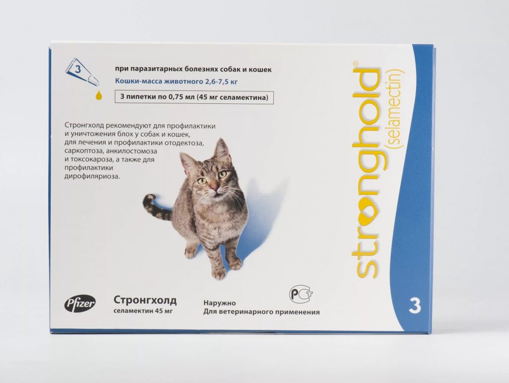 | Стронгхолд | Капли для нанесения на холку | Селамектин | Эффективен в отношении большинства видов гельминтов, уничтожает эктопаразитов. Отличается низкой степенью токсичности. | 6 недель |
