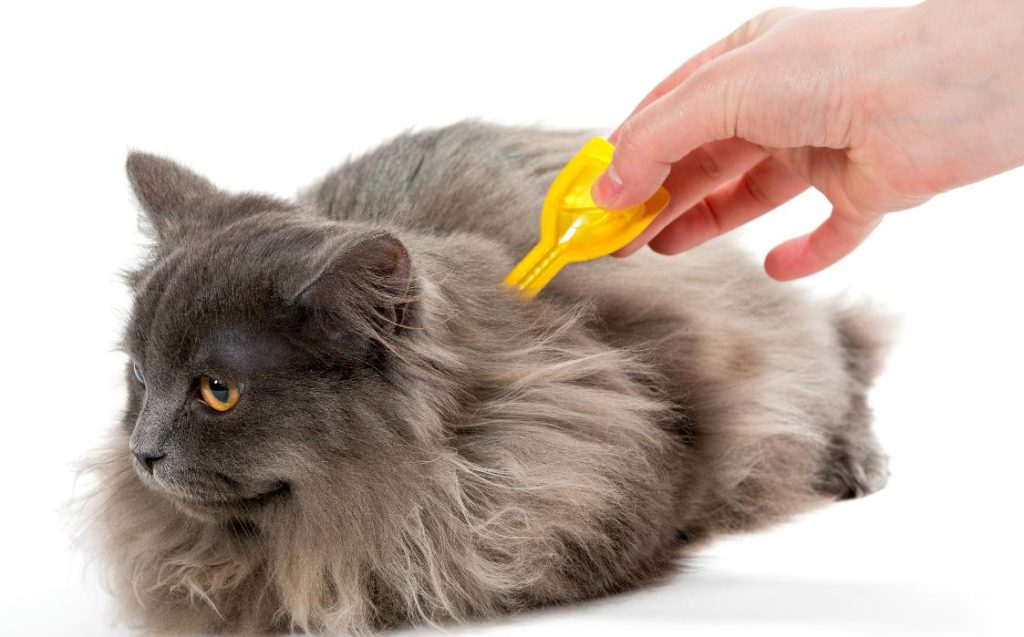 - Капли для наружного применения. Жидкость наносят на холку, чтобы кошка не могла ее слизать. Такие средства, как правило, оказывают комплексное действие, они помогают избавиться не только от гельминтов, но и от эктопаразитов, таких как клещи, блохи, власоеды. Вещество быстро всасывается в кожу и распространяется по организму.