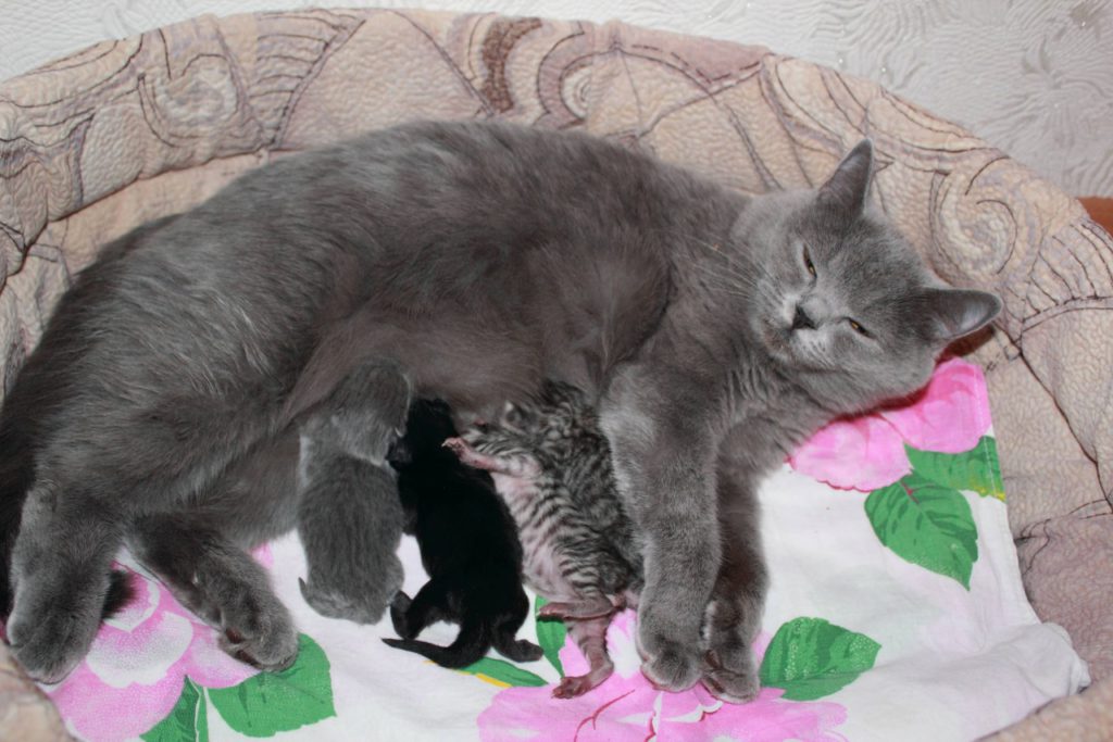 После того, как все котята появились на свет, нужно убрать весь мусор и грязные пеленки, при необходимости застелить коробку чистой подстилкой и следить за тем, чтобы все малыши имели доступ к материнскому молоку и были достаточно активными. Если кошка не спешит проявлять материнский инстинкт, убегает от котят, не хочет или по каким-то причинам не может их кормить, следует купить специальную молочную смесь и прибор для кормления (продаются в ветеринарных аптеках).