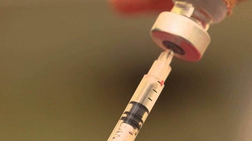 Наберите точную дозу препарата в шприц. Прокручивающим движением зафиксируйте иглу, чтобы во время постановки инъекции она не сорвалась. Слегка надавливая на поршень, выпустите воздух, во избежание попадания его в кровеносный сосуд.