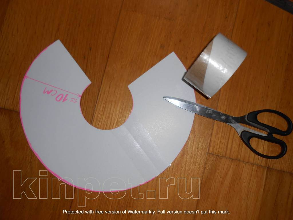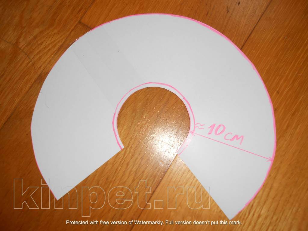 - После снятия размеров окружности шеи питомца вырезать из картона конус с запасом.
