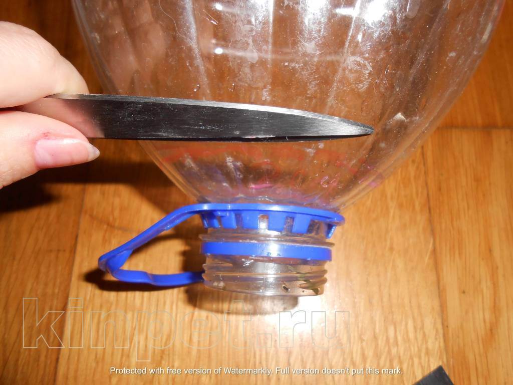 Шаг 3 Там, где заканчивается расширение бутылки, срежьте дно.
