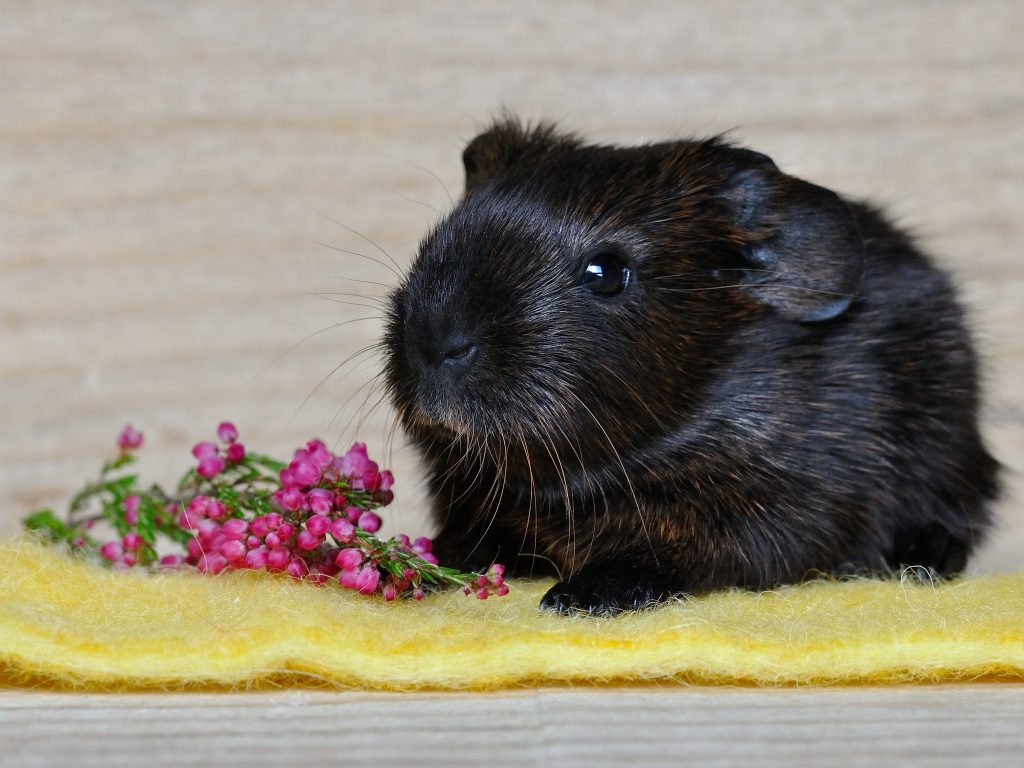 Чёрная свинка имеет блестящую гладкую чёрную шерсть с равномерным окрасом по всему туловищу. Чтобы оценить соответствие стандарту, зверька осматривают при ярком дневном свете: шерсть не должна содержать коричневых оттенков и вкраплений другого цвета.