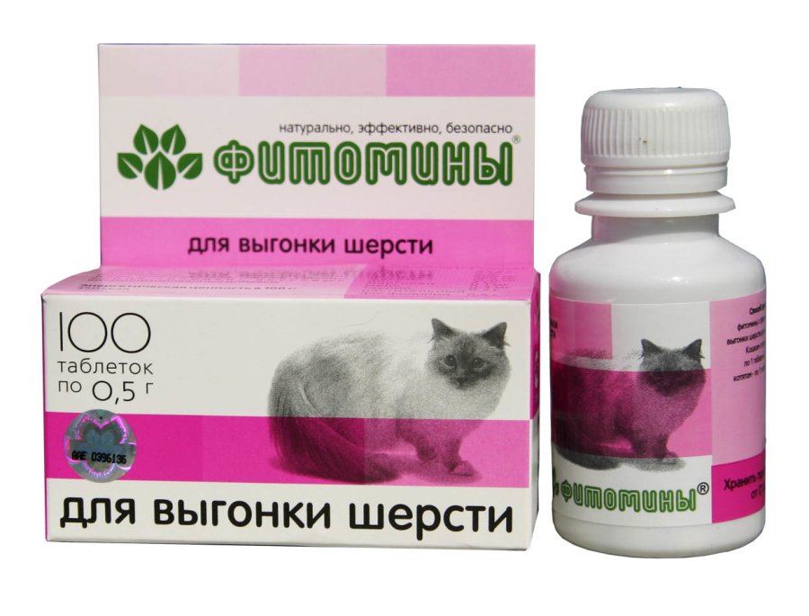 - Фитомины. Таблетки для выгонки шерсти, состоящие из экстрактов растений. Отличаются мягким воздействием на организм питомца.