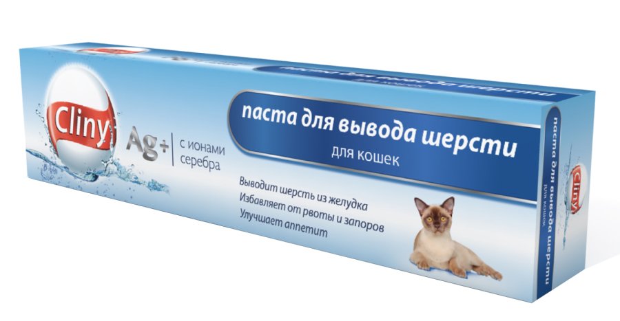 Для выведения шерсти может быть использована паста «Сliny». В нее входит растительные масла. Ко всему прочему паста включает в себя огромное количество балластных элементов. Отличаются они приятным запахом, способствуют улучшению пищеварения. Паста перед скармливанием должна быть смешана с обычным кормом, который вы своему домашнему питомцу даете регулярно.