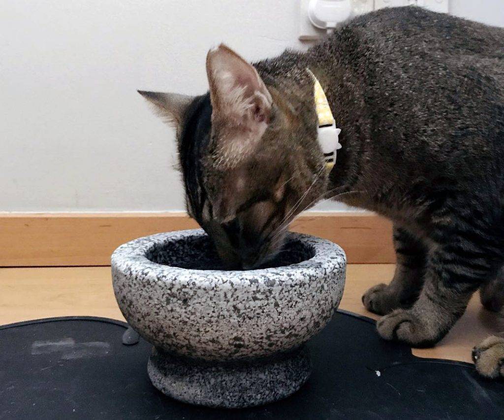 Этот котенок все время переворачивал миску с водой, поэтому владелец поставил ему для питья мраморную ступку!