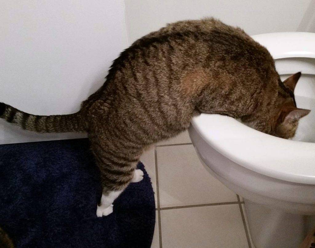 Забавно, но человеческий унитаз может показаться кошке неплохим источником свежей воды – далеко от кухни, в укромном месте, на возвышении. Опасность в том, что кошка может отравиться моющими средствами по недосмотру владельцев.
