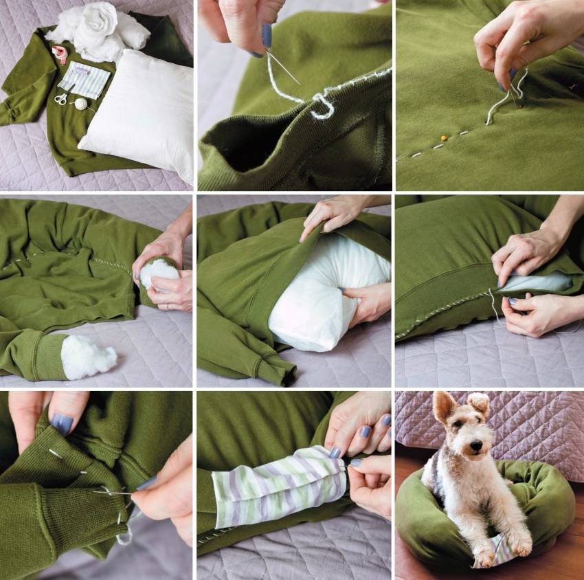 Процесс изготовления лежака для собаки своими руками из старой кофты
