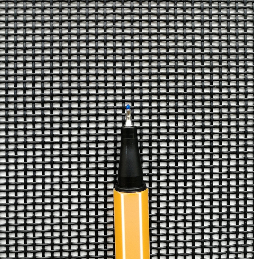 Самые привычные из всех, самые дешевые и самые удобные в монтаже. Для их изготовления используется полиэстер Pet Screen черного цвета. Тонкая нить толщиной 0,6-0,8 мм переплетается, образуя ячейки размером 1,65х1,65мм или 1,1х1,5мм. Для прочности в местах соприкосновения их дополнительно термически спаивают между собой. Такие полотна продаются в магазинах рулонами. Также специализированная компания может предложить приобрести стандартную рамку с такой сеткой или изготовить по индивидуальным размерам. Алюминиевые рамки съемные, и могут иметь дополнительную горизонтальную планку жесткости.
